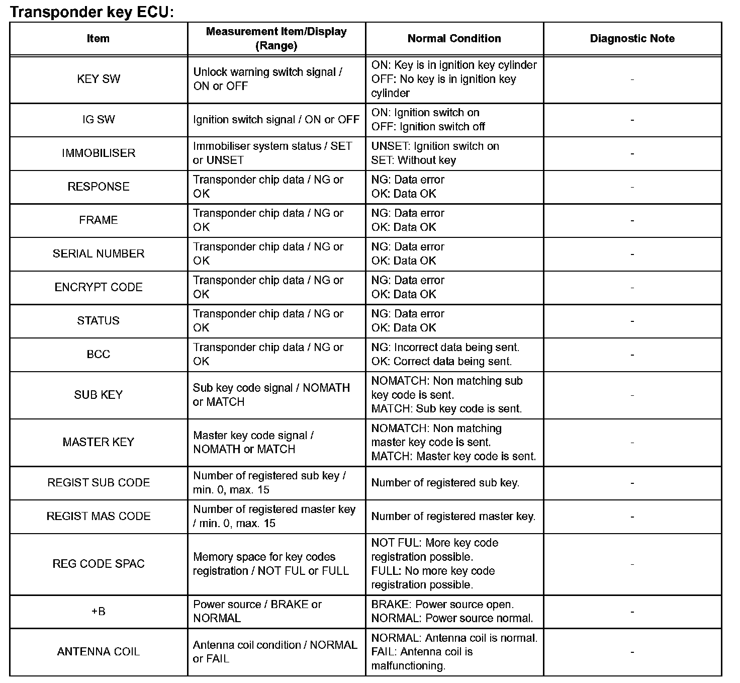 d. Enter the following menus: DIAGNOSIS / OBD/MOBD / IMMOBILIZER / DATA LIST.