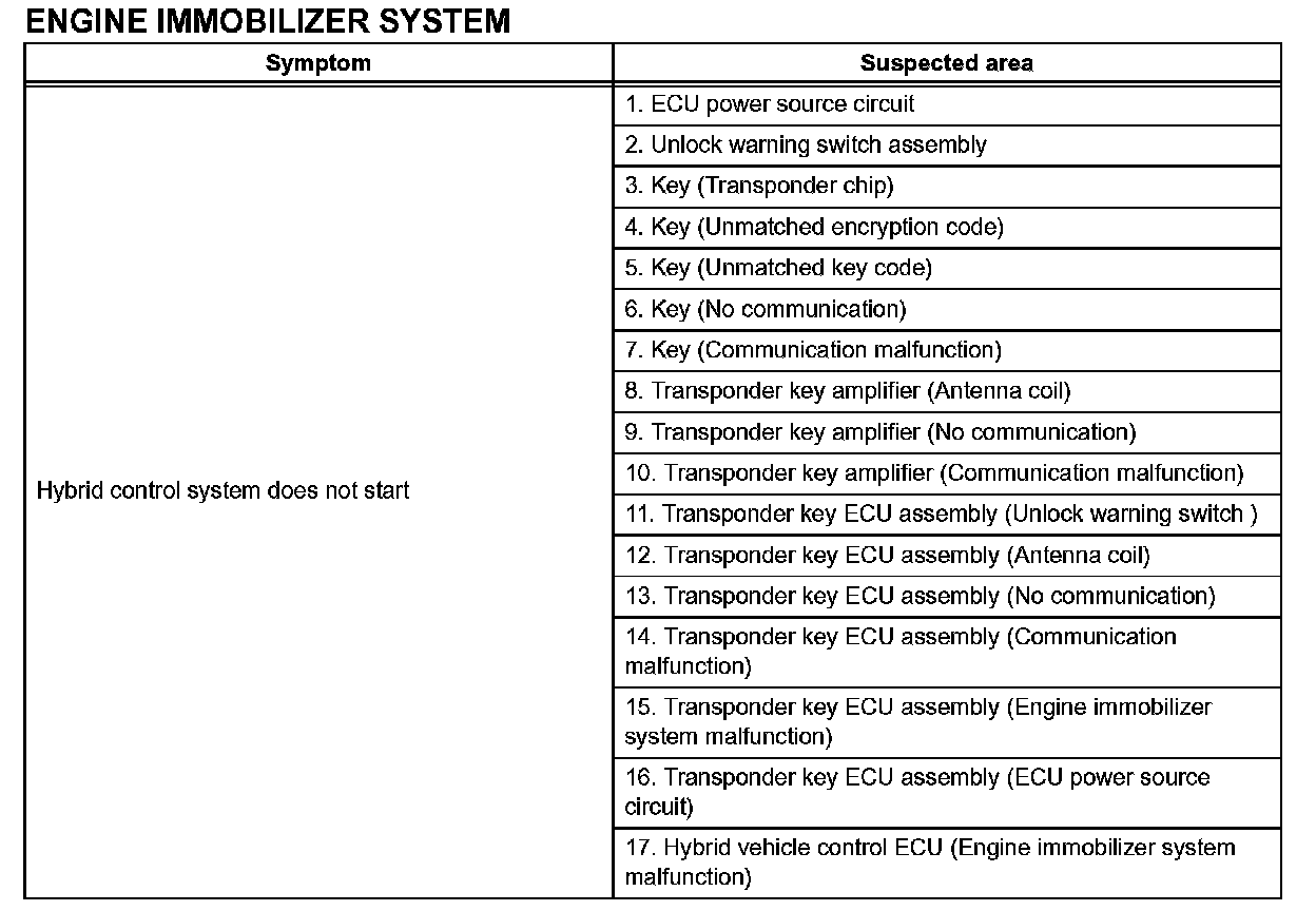 PROBLEM SYMPTOMS TABLEProblem Symptoms Table - Engine Immobilizer System: