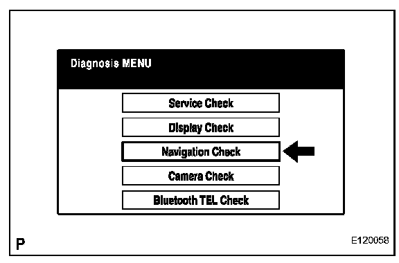 a. Select "Navigation Check" from the "Diagnosis MENU" screen.