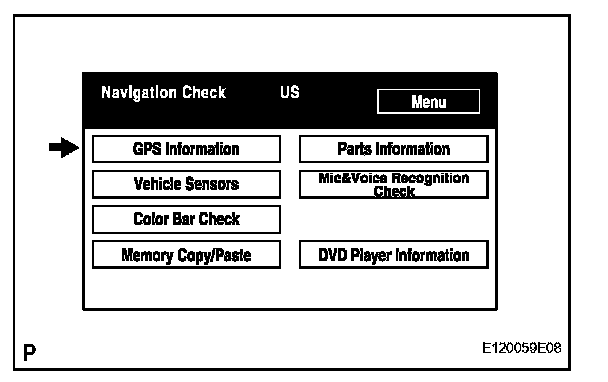 a. Select "GPS Information" from the "Navigation Check" screen.