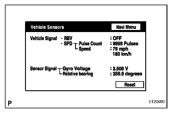 - This screen displays vehicle signals input to the navigation ECU.