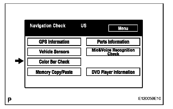 a. Select "Color Bar Check" from the "Navigation Check" screen.