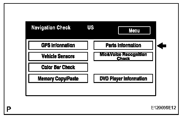 a. Select "Parts Information" from the "Navigation Check" screen.