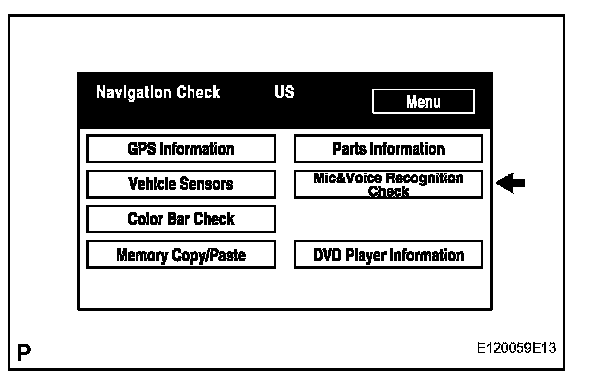 a. Select "Mic & Voice Recognition Check" on the "Display Check" screen to display "MICROPHONE & VOICE RECOGNITION CHECK" screen.
