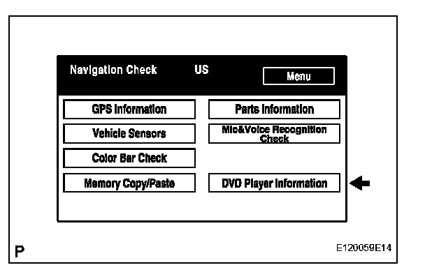 a. Select "DVD Player Information" from the "Navigation Check" screen.