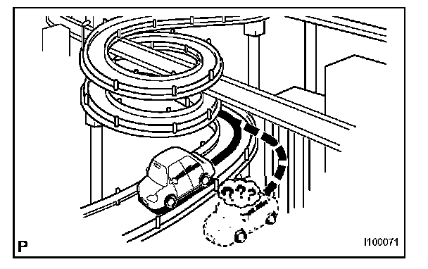 8. When the ignition switch is turned to the ACC or ON position on a turntable before parking, the current vehicle position mark may not point in the correct direction. The same will occur when the vehicle comes out of parking.