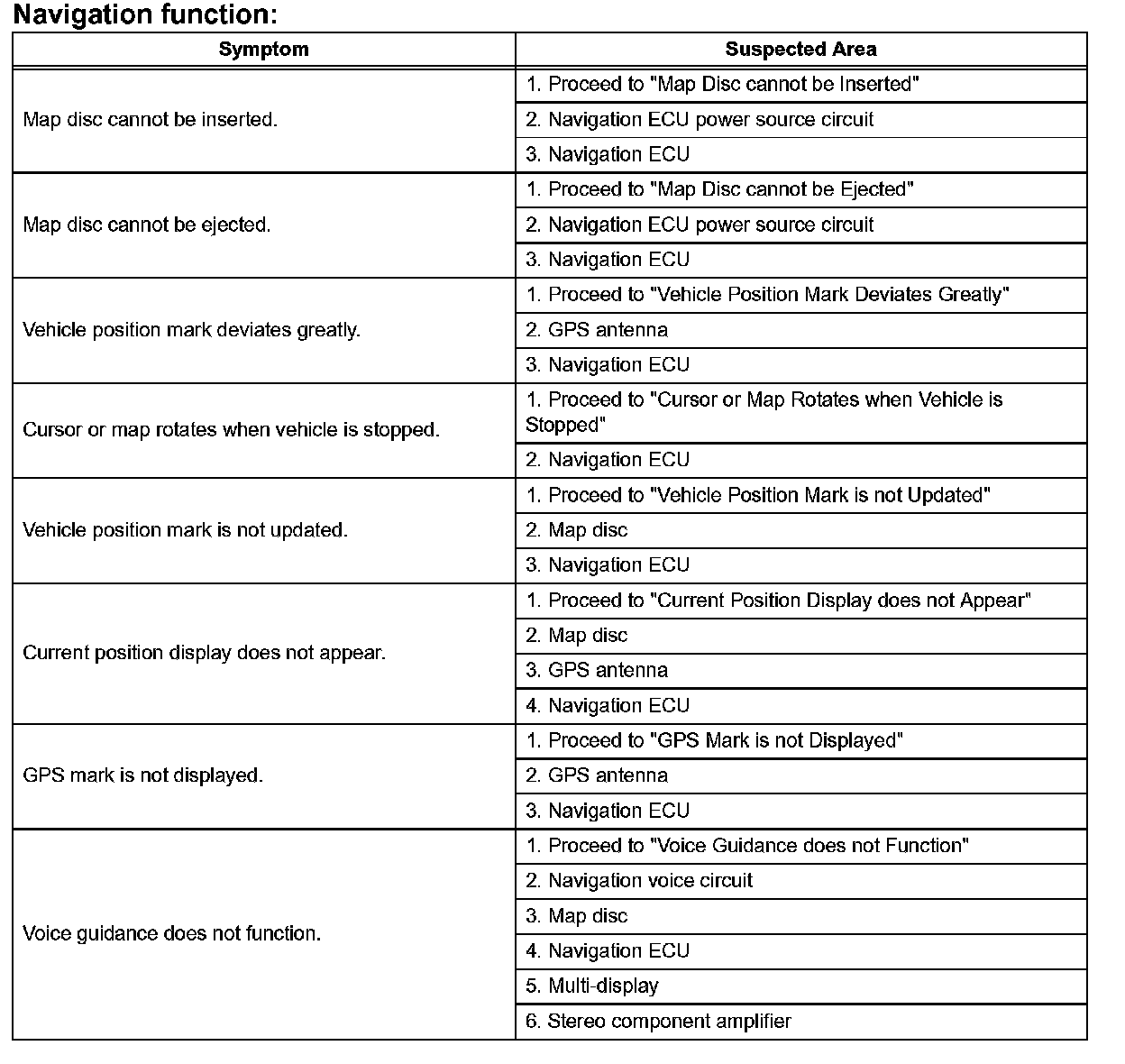 Problem Symptoms Table - Navigation Function (Part 1):