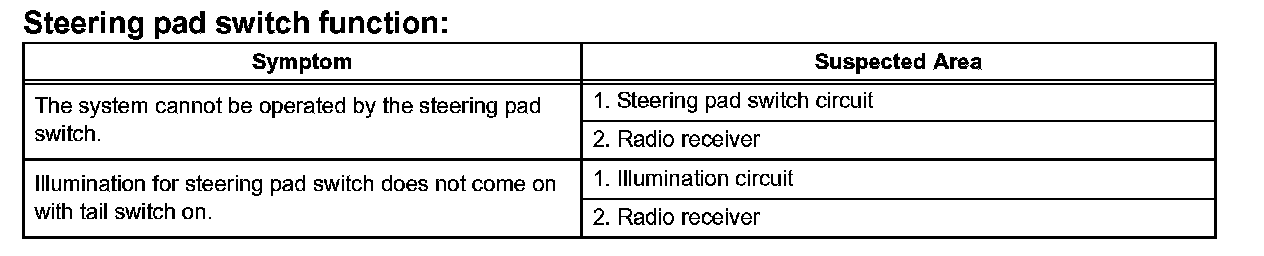 Problem Symptoms Table - Steering Pad Switch Function: