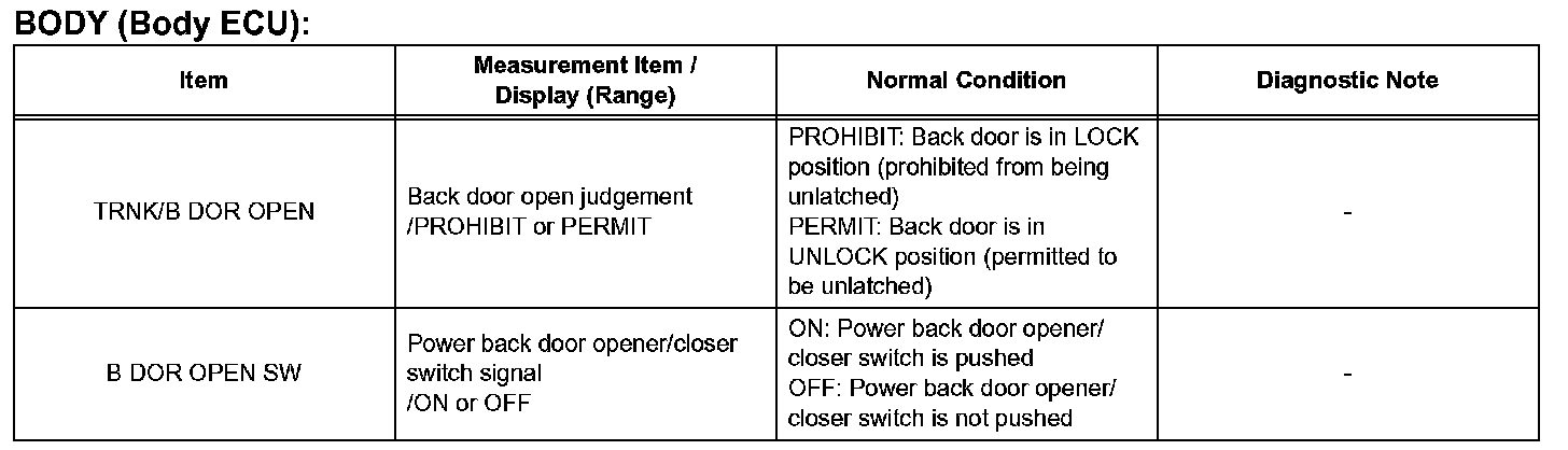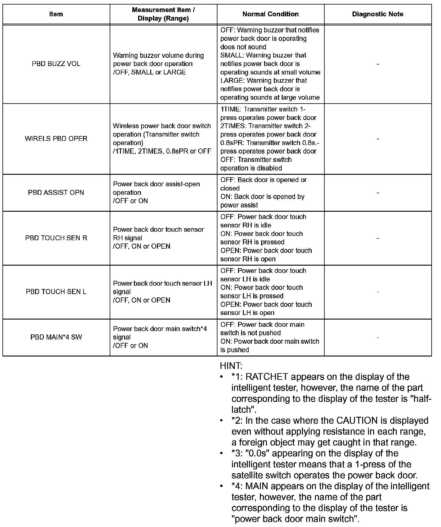 HINT: Using the intelligent tester's DATA LIST allows switch, actuator and other item values to be read without removing any parts. Reading the DATA LIST early in troubleshooting is one way to save time.