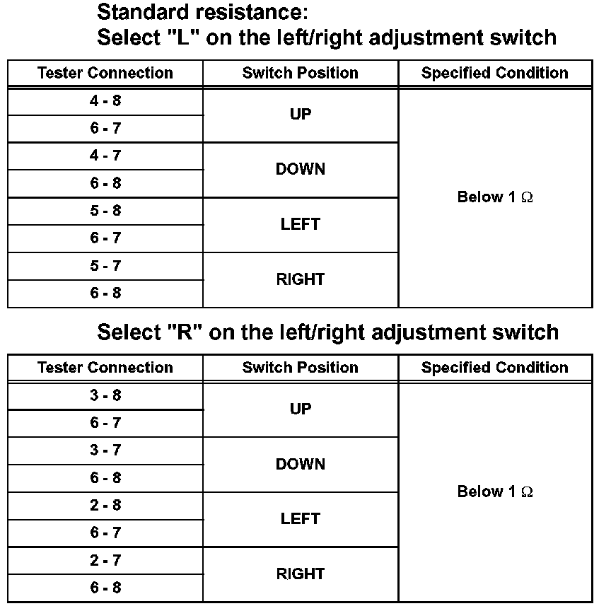 b. Measure the resistance according to the value(s) in the table below when the switch is operated.