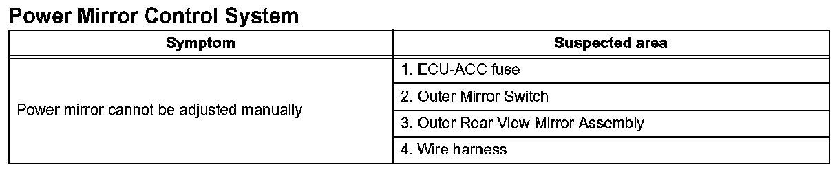 Problem Symptoms Table - Power Mirror Control System (w/o Memory):