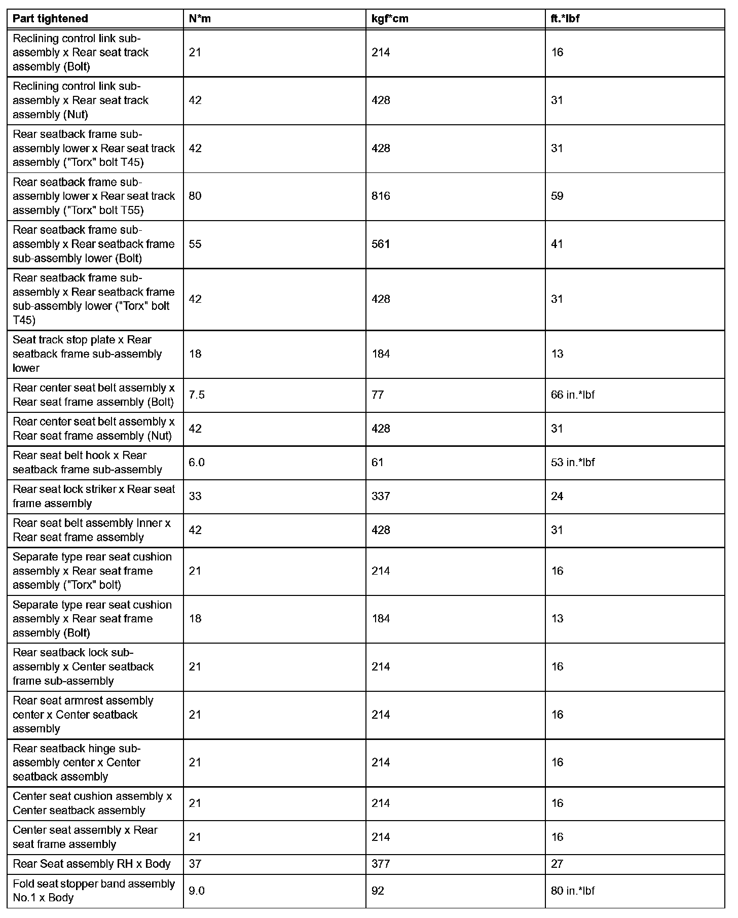 Seat - Torque Specifications (Part 2):