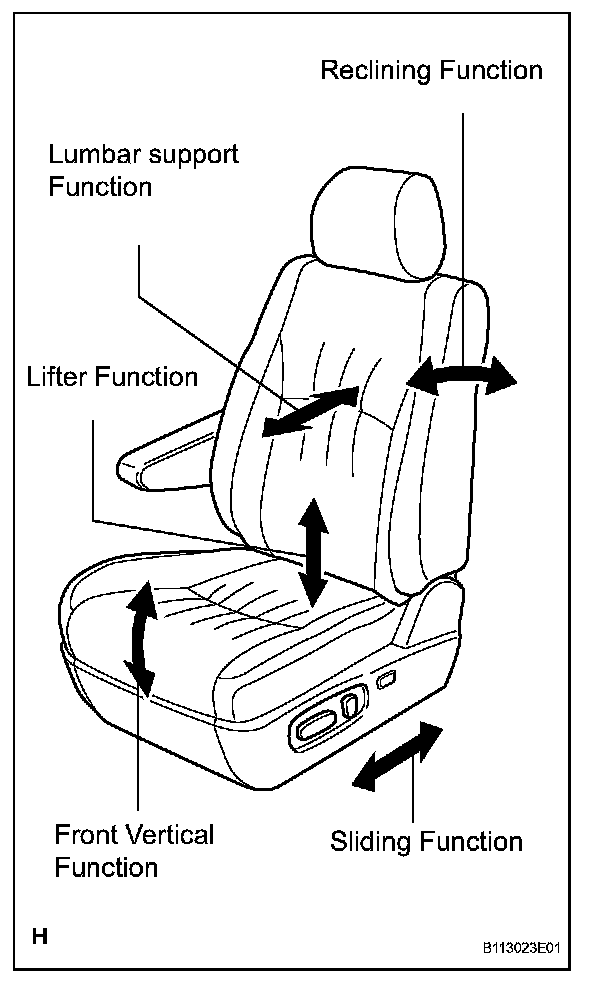 1. Move the seat to any of the maximum position by operating the power seat switch, and keep the seat there for approximately 60 seconds.