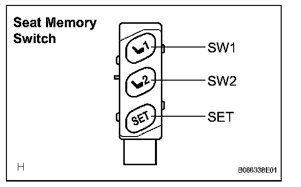k. Check that the seat does not move (the seat position is not recorded) by performing the following steps while pressing the SET switch. Press either the SW1 switch or the SW2 switch after pressing SW1 and SW2 at the same time.
