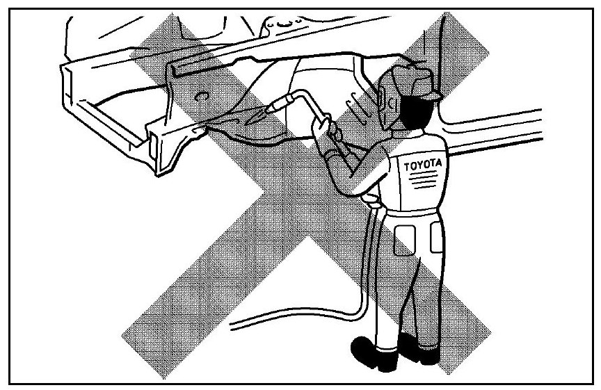 Toyota prohibits the use of the heat repair method on body structure panels when repairing a vehicle damaged in a collision.