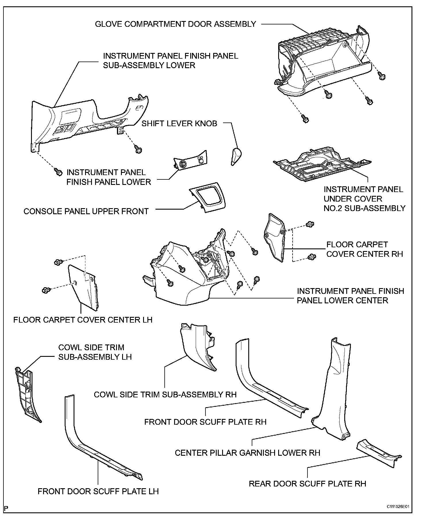 15. REMOVE INSTRUMENT PANEL FINISH PANEL SUBASSEMBLY LOWER