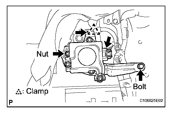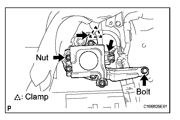 b. Install the yaw rate sensor assembly with the bolt, nut, and clamp.
