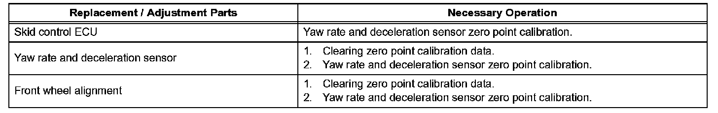 e. Using a check wire, perform zero point calibration of the yaw rate and deceleration sensor.