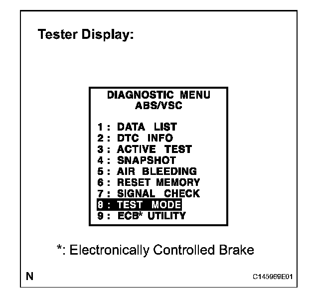 c. Check that no codes other than ABS code 42, VSC code 45 and Electronically Controlled Brake code 48, 66, or 95 are stored in the diagnostic system.