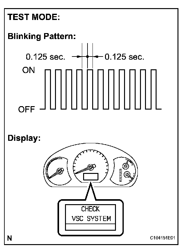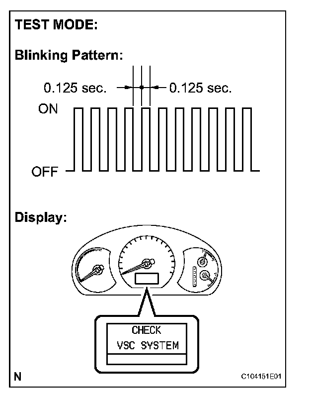 3. Check that the ABS and brake control warning lights blink and "CHECK VSC SYSTEM" is displayed on the multi information display (test mode).