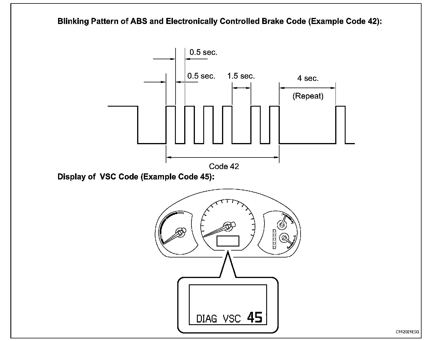 HINT: The ABS warning light and multi information display do not indicate the normal system code.