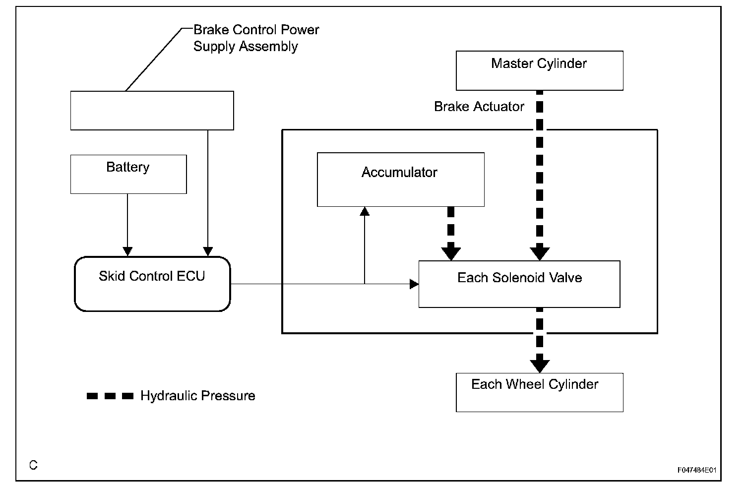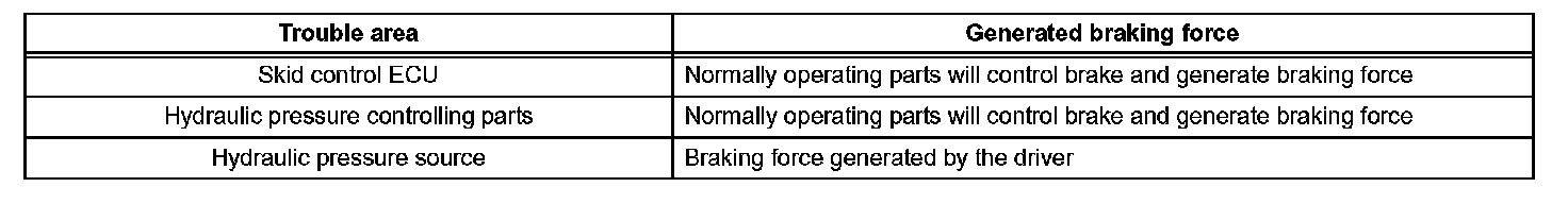 a. If a malfunction occurs in the skid control ECU, sensor signal, or actuator, rest normally operating parts will maintain brake control.