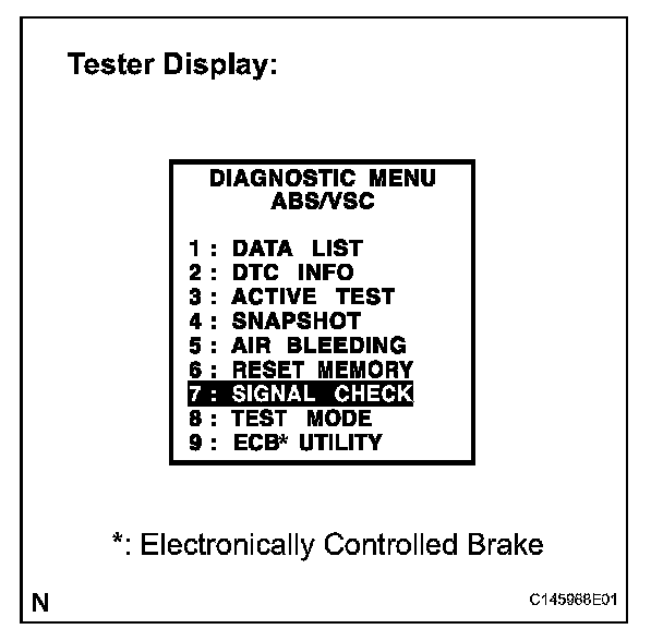 HINT: The signal check may not be completed if the vehicle has its wheels spun or the steering wheel turned during this check.