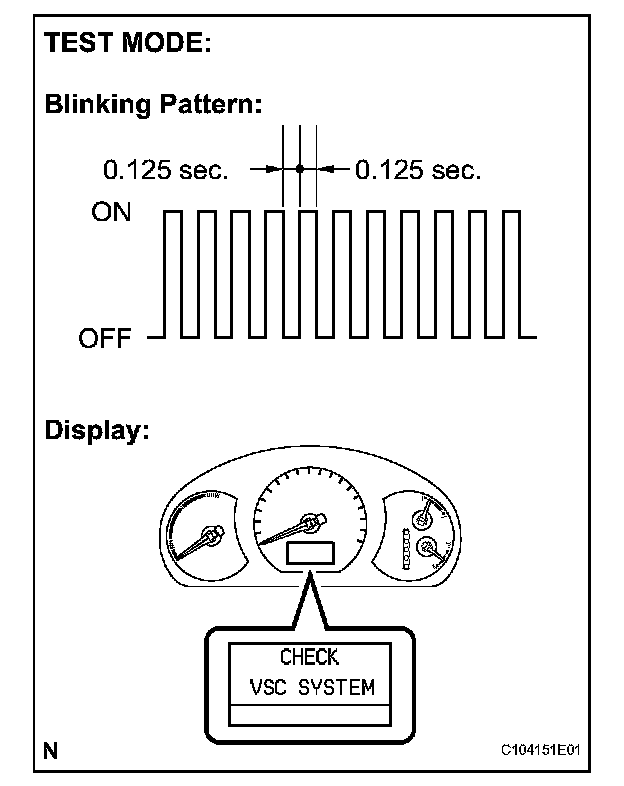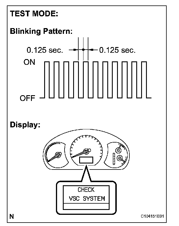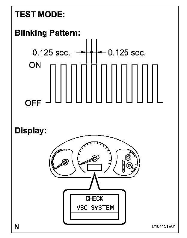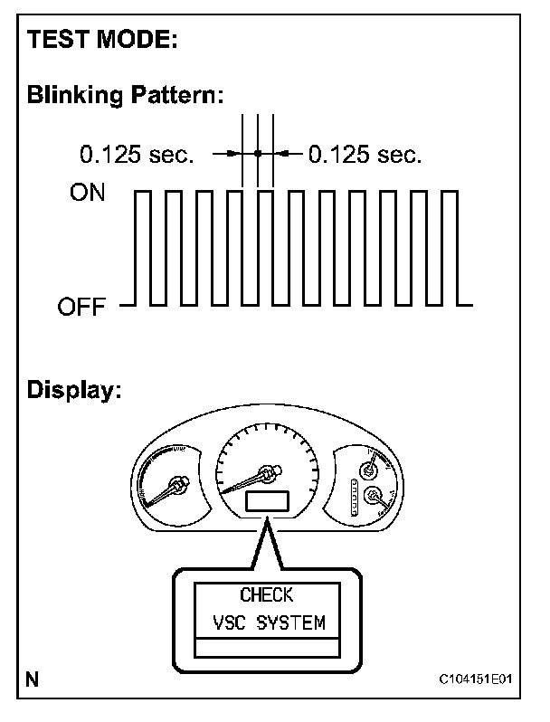 6. Check that the ABS and warning lights blink and "CHECK VSC SYSTEM" is displayed on the multi information display (test mode).
