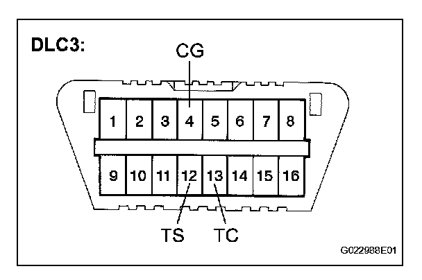 c. After performing the check, disconnect the SST from terminals TS and CG, TC and CG of the DLC3 and turn the ignition switch off.