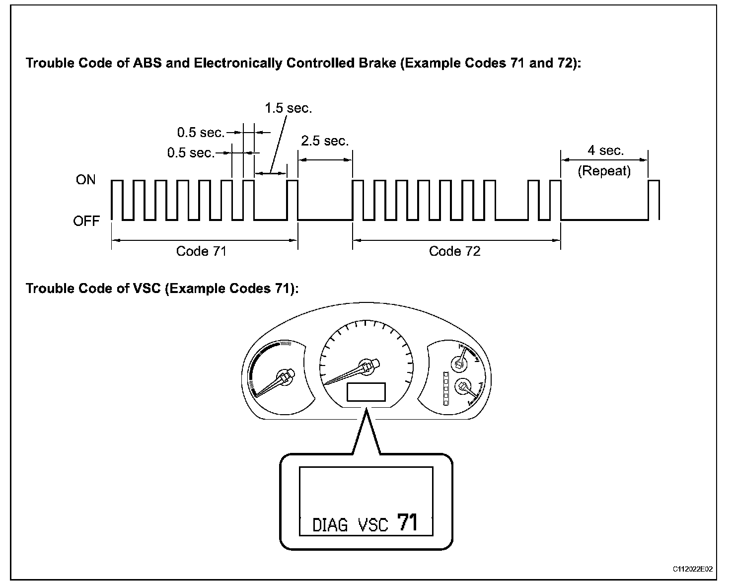 b. Count the number of blinks of the ABS and brake control warning light, and read the "DIAG VSC" indication on the multi information display.