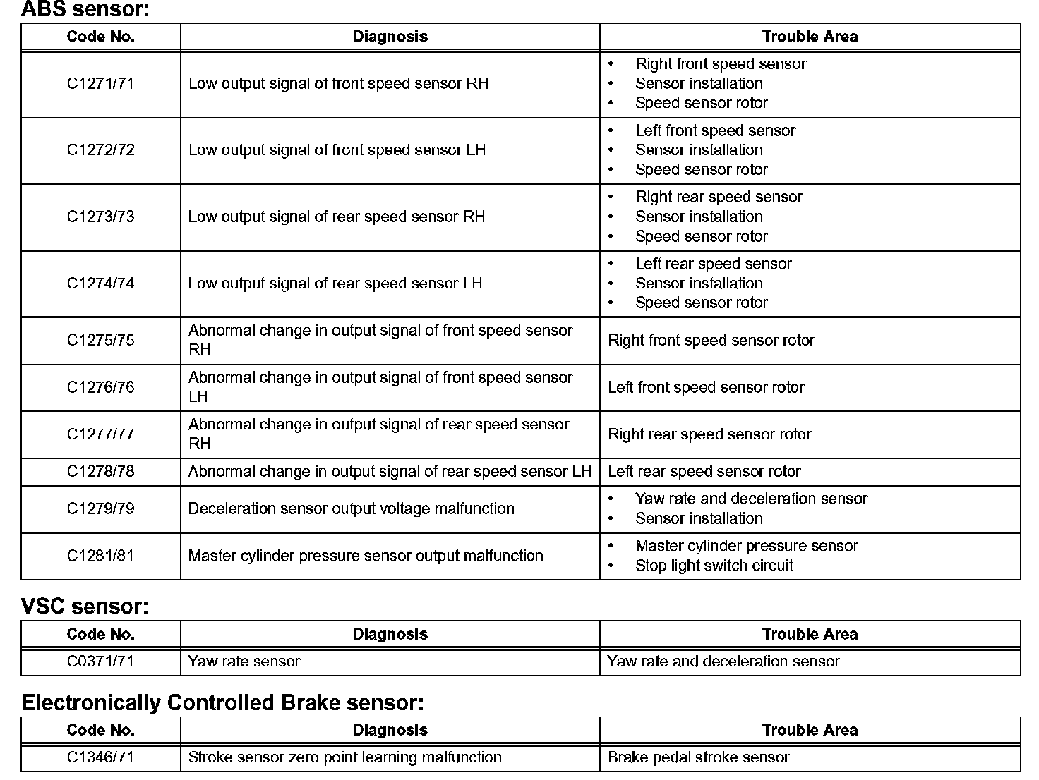 1. VSC SENSOR CHECK
