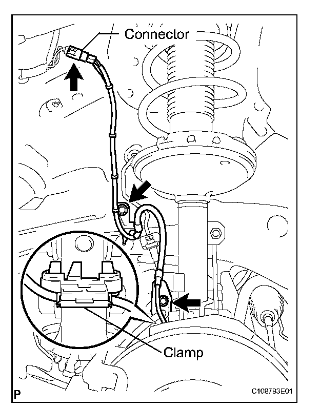 NOTE: Do not twist the wire harness for the front speed sensor when installing the speed sensor.