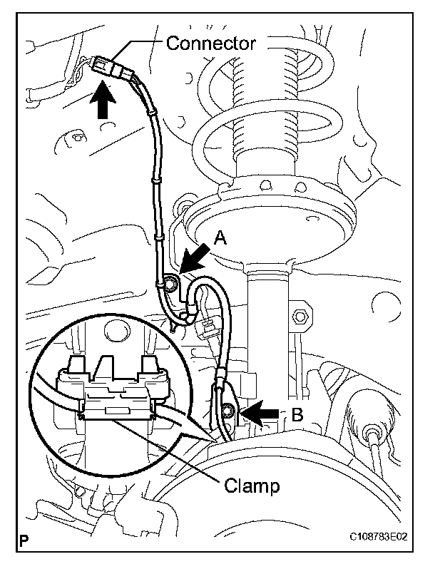b. Install the front speed sensor with the 2 bolts and the clamp.