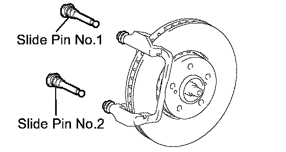 NOTICE: Do not damage the front disc brake cylinder slide pin No. 2.