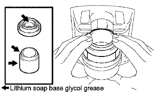 a. Apply lithium soap base glycol grease to the seal surface of 2 new bushing dust boots.