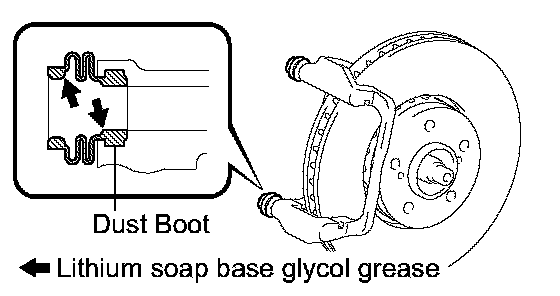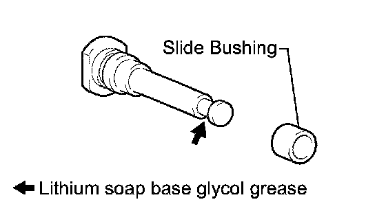 a. Apply lithium soap base glycol grease to a new front disc brake cylinder slide bushing.
