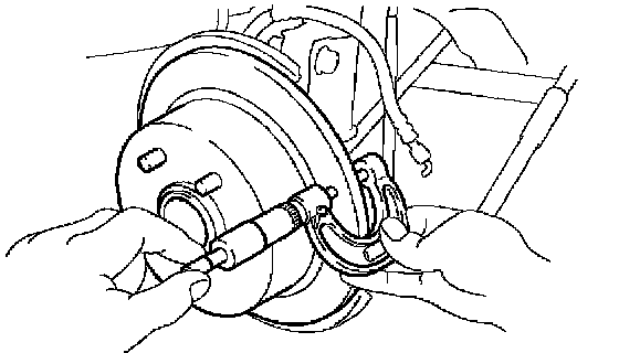 b. If the disc thickness is less than the minimum, replace the rear disc.