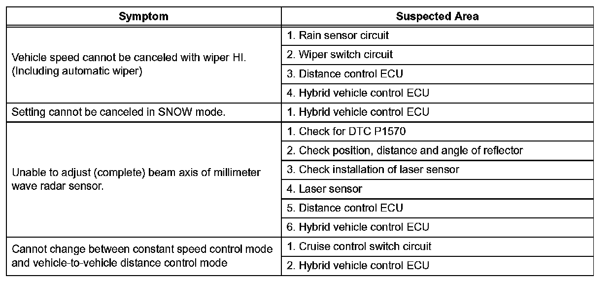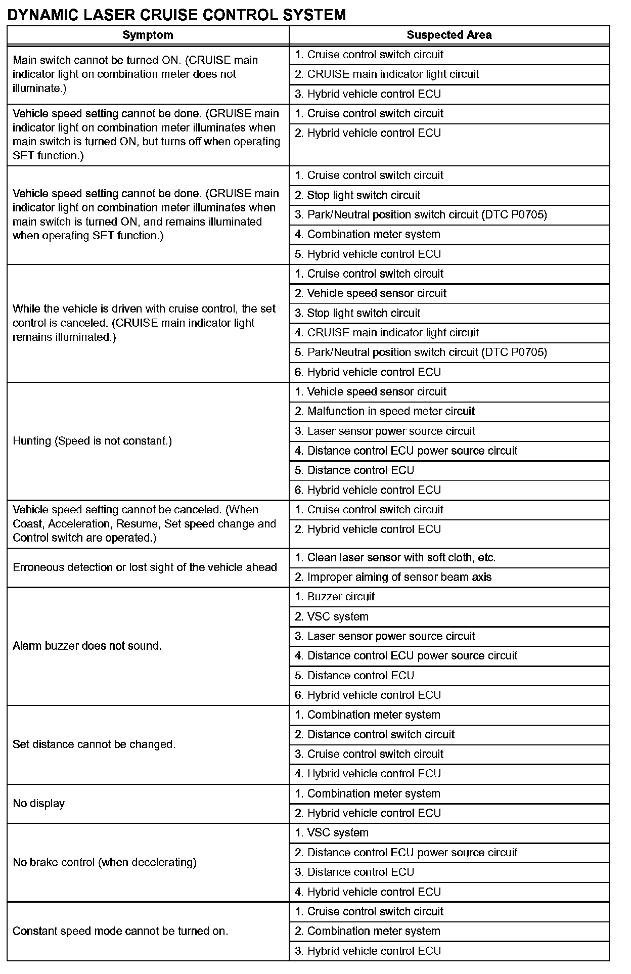 Problem Symptoms Table - Dynamic Laser Cruise Control System (Part 2):