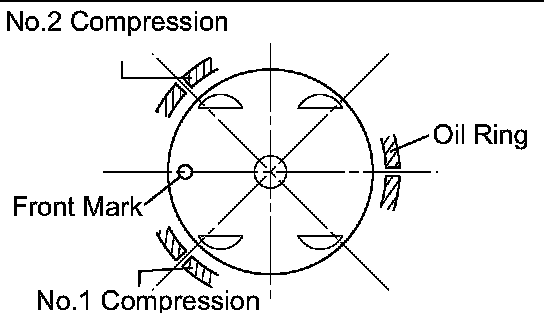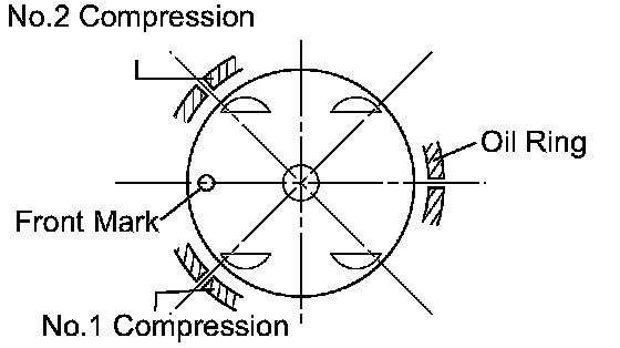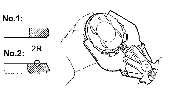 HINT: The compression ring No. 2 is installed with code mark 2R facing upward as shown in the illustration.