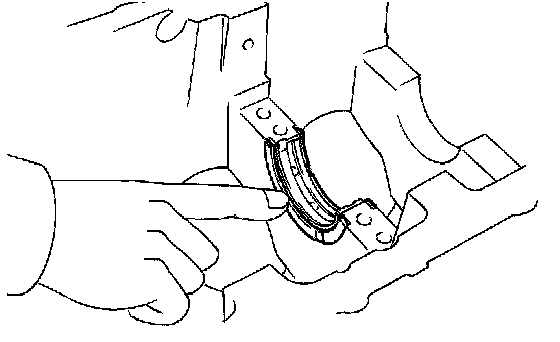c. Align the key of the bearing with the keyway of the main bearing cap, and push in the 4 lower bearings.