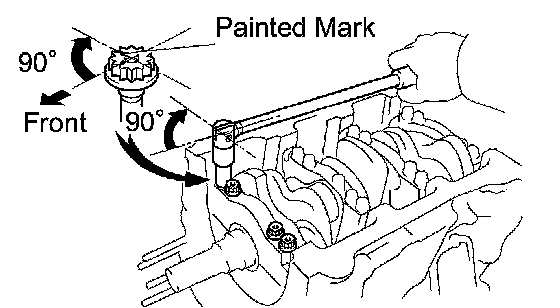 j. Retighten the bearing cap bolts by 90° in the same sequence as step (h).