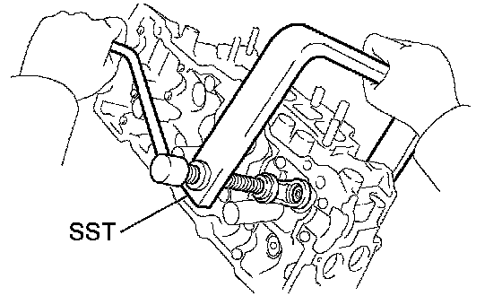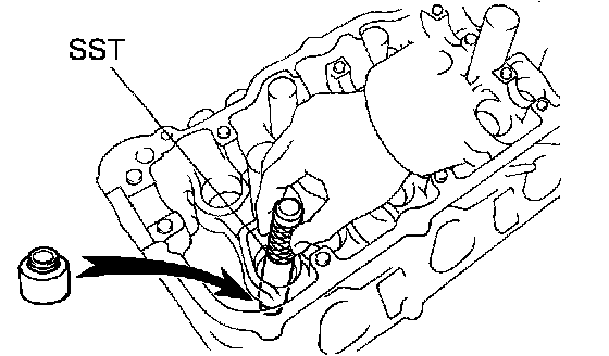 b. Using SST, compress the valve spring and place the 2 retainer locks around the valve stem.