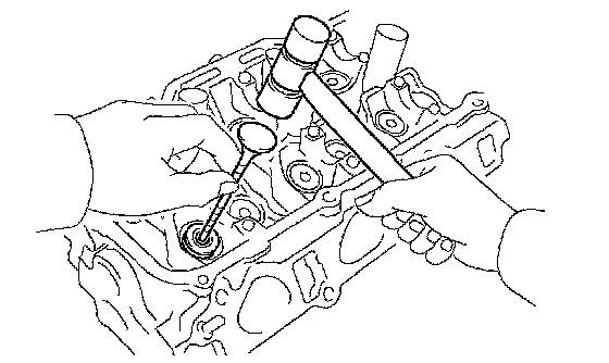 c. Using a plastic hammer and a discarded valve (the tip is wrapped with tape), lightly tap the installed valve to fit into place.