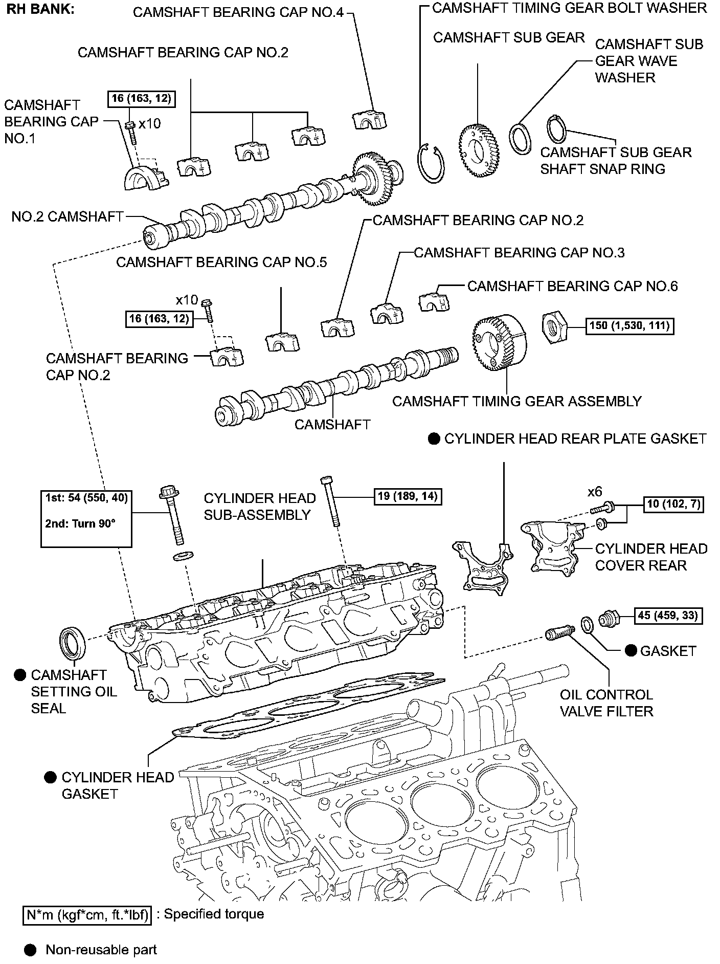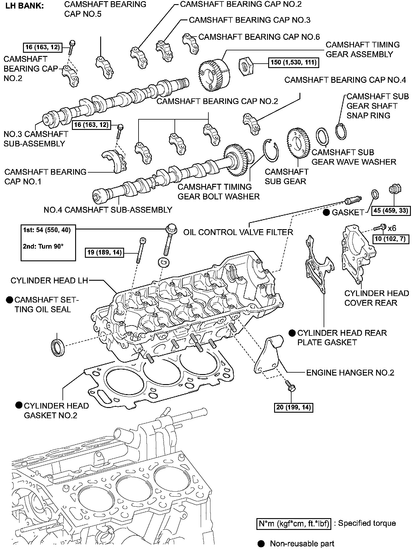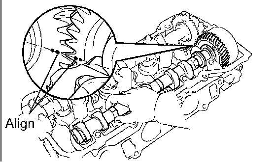 HINT: When installing the camshaft, make certain that the torsional spring force of the sub-gear has been eliminated by installing the service bolt.