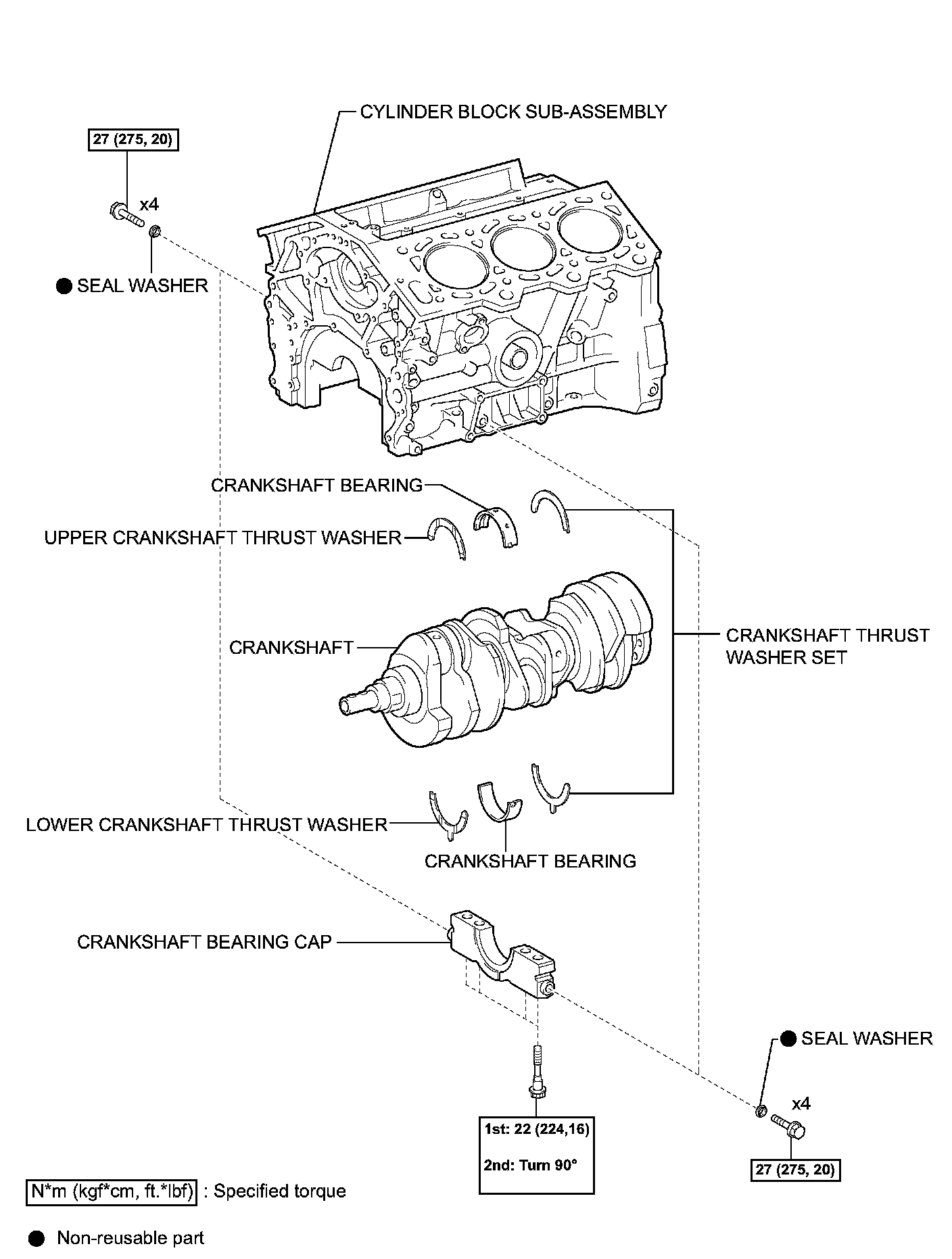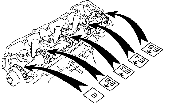^ Install the No. 1 bearing cap within 5 minutes after applying seal packing.