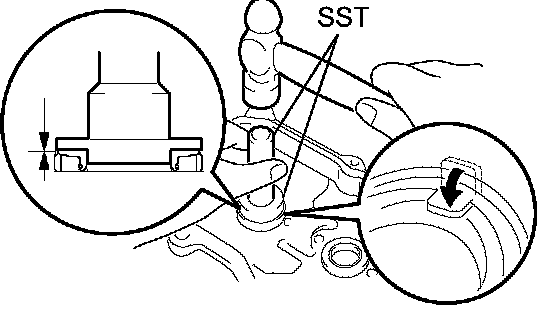 a. Using SST and a hammer, tap in a new gasket until its surface is flush with the upper edge of the cylinder head cover.