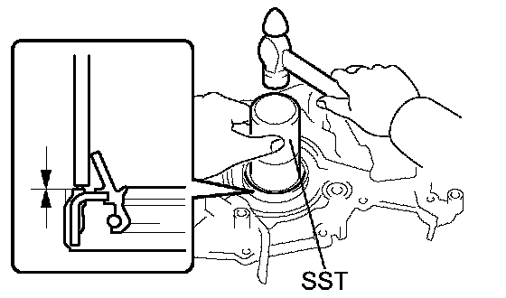 a. Using SST and a hammer, tap in a new oil seal until its surface is flush with the oil pump body edge.