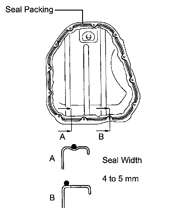 b. Apply a continuous bead of seal packing (Diameter 4 to 5 mm (0.16 to 0.20 inch)) as shown in the illustration.