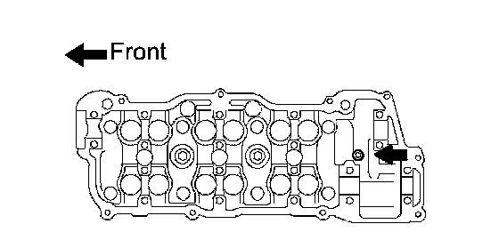 d. Mark the front side of each cylinder head bolt head with paint as shown in the illustration.