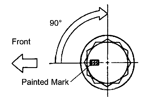 b. Place the No. 4 camshaft at a 90° angle of the timing mark (1 -dot mark) on the cylinder head.